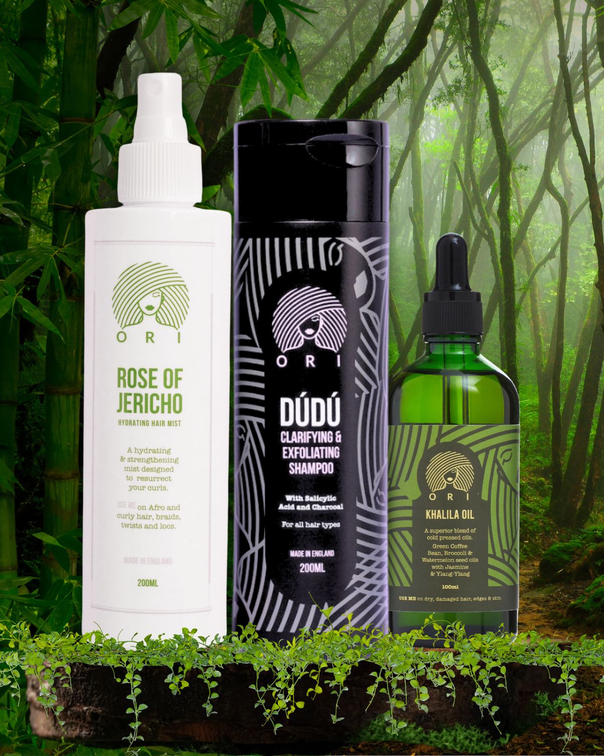 For best results, use the Dúdú Shampoo during your regular wash days, followed by the Rose of Jericho Hair Mist and Khalila Oil to maintain hydration and nourishment.